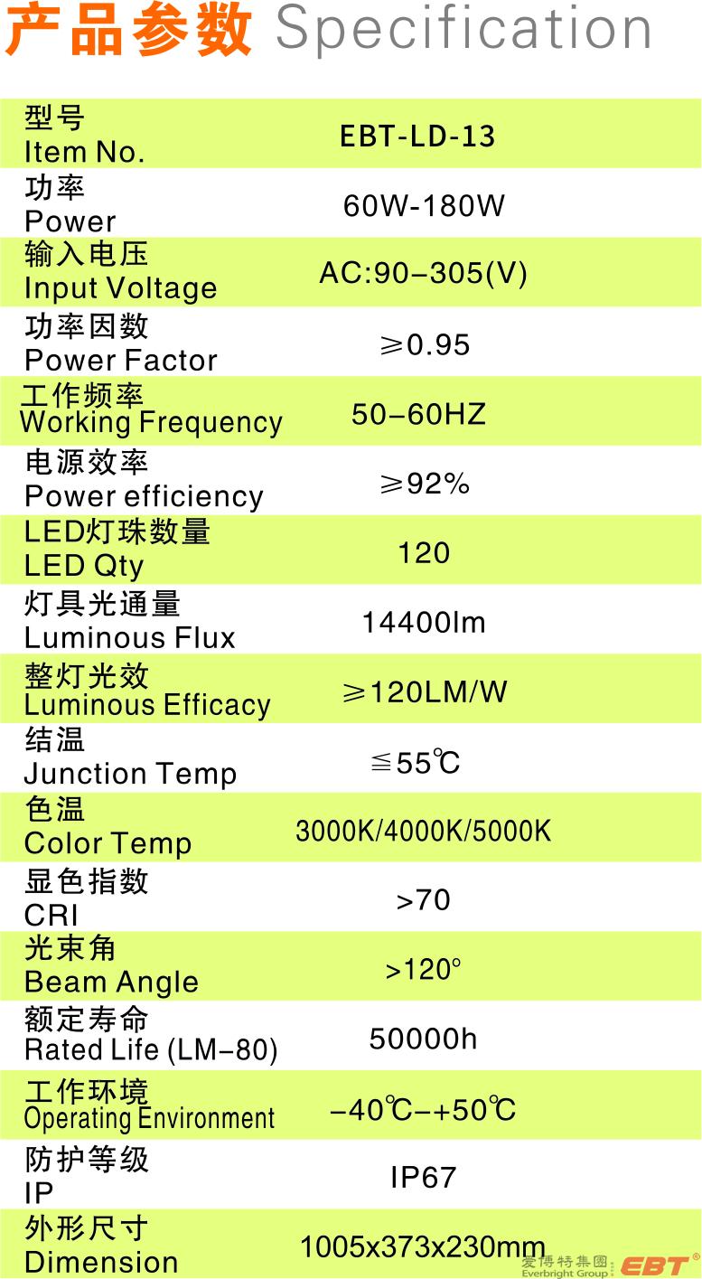 產(chǎn)品描述:采用國際知名品牌芯片,高亮度,低光衰; 防水防塵防腐蝕; 采用通孔結構散熱,使用壽命長(cháng); 科學(xué)配光,適用多種場(chǎng)所。